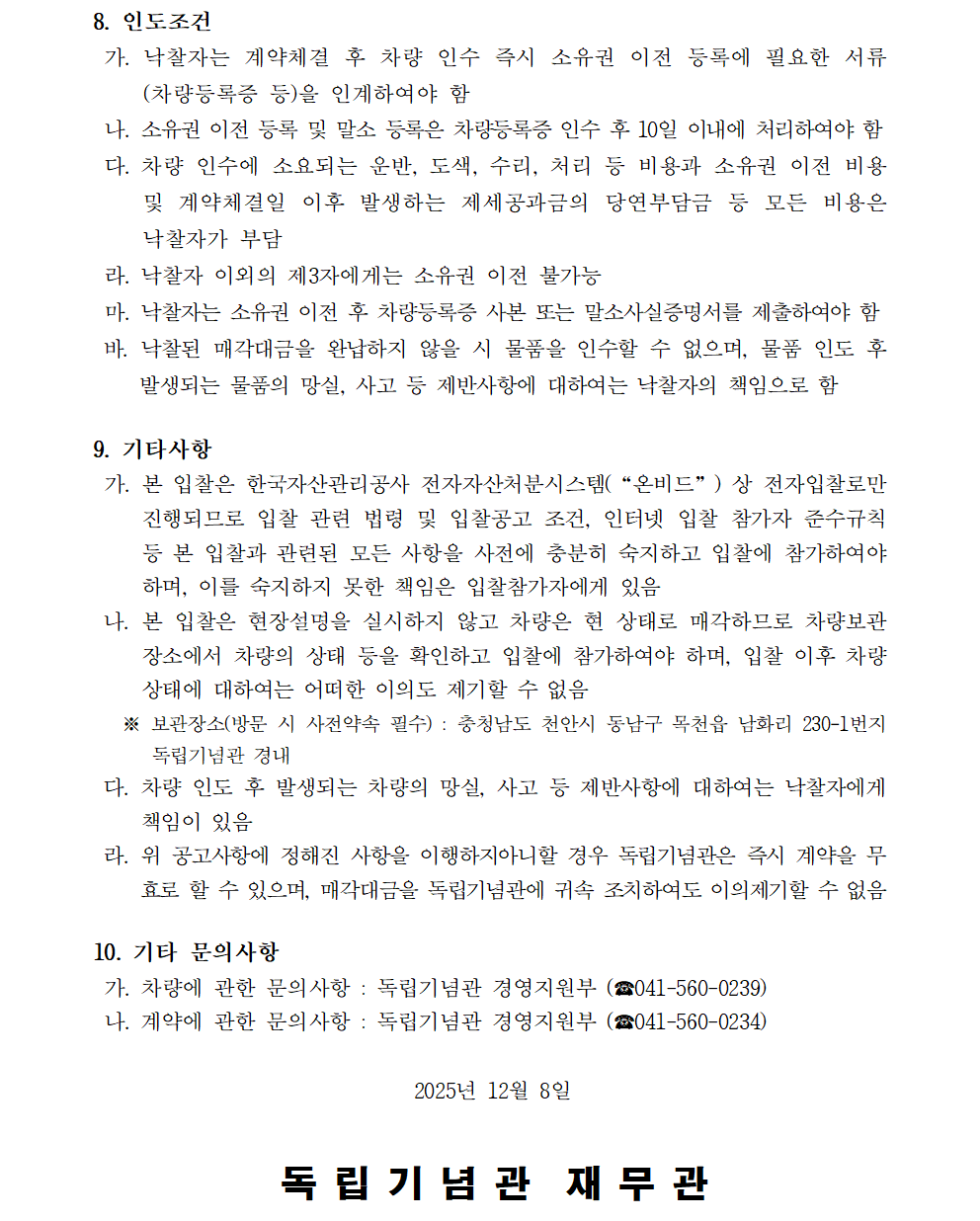 독립기념관 불용물품(저상버스) 매각