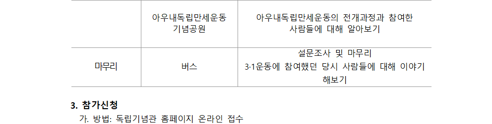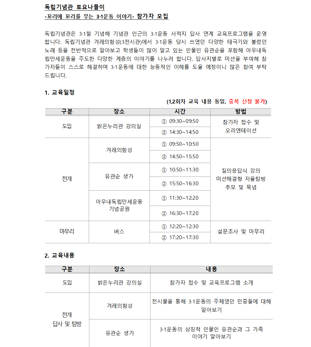 독립기념관 토요나들이(꼬리에 꼬리를 무는 3.1운동 이야기)참가자 모집 안내문