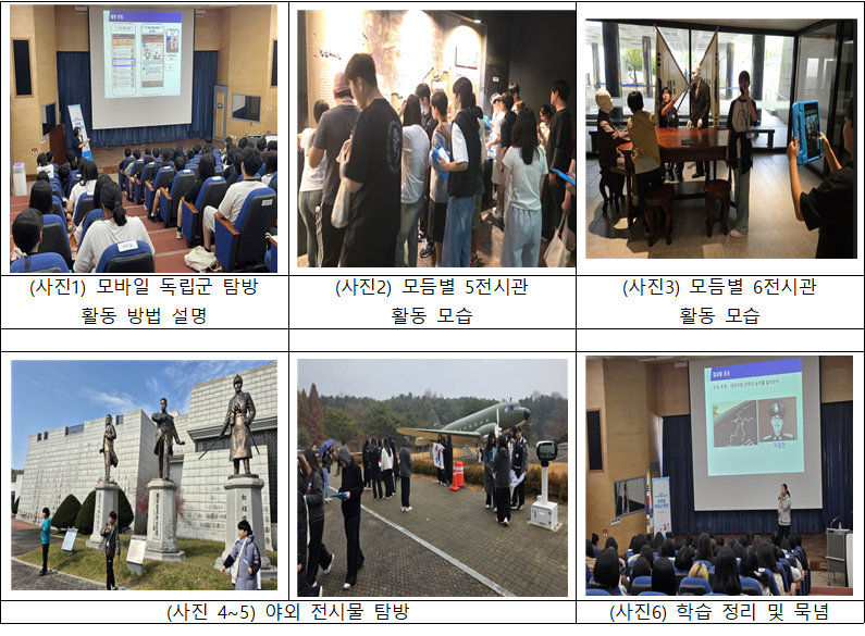 교육장소 : 독립기념관 밝은누리관 강당, 5·6전시관, 야외 전시물