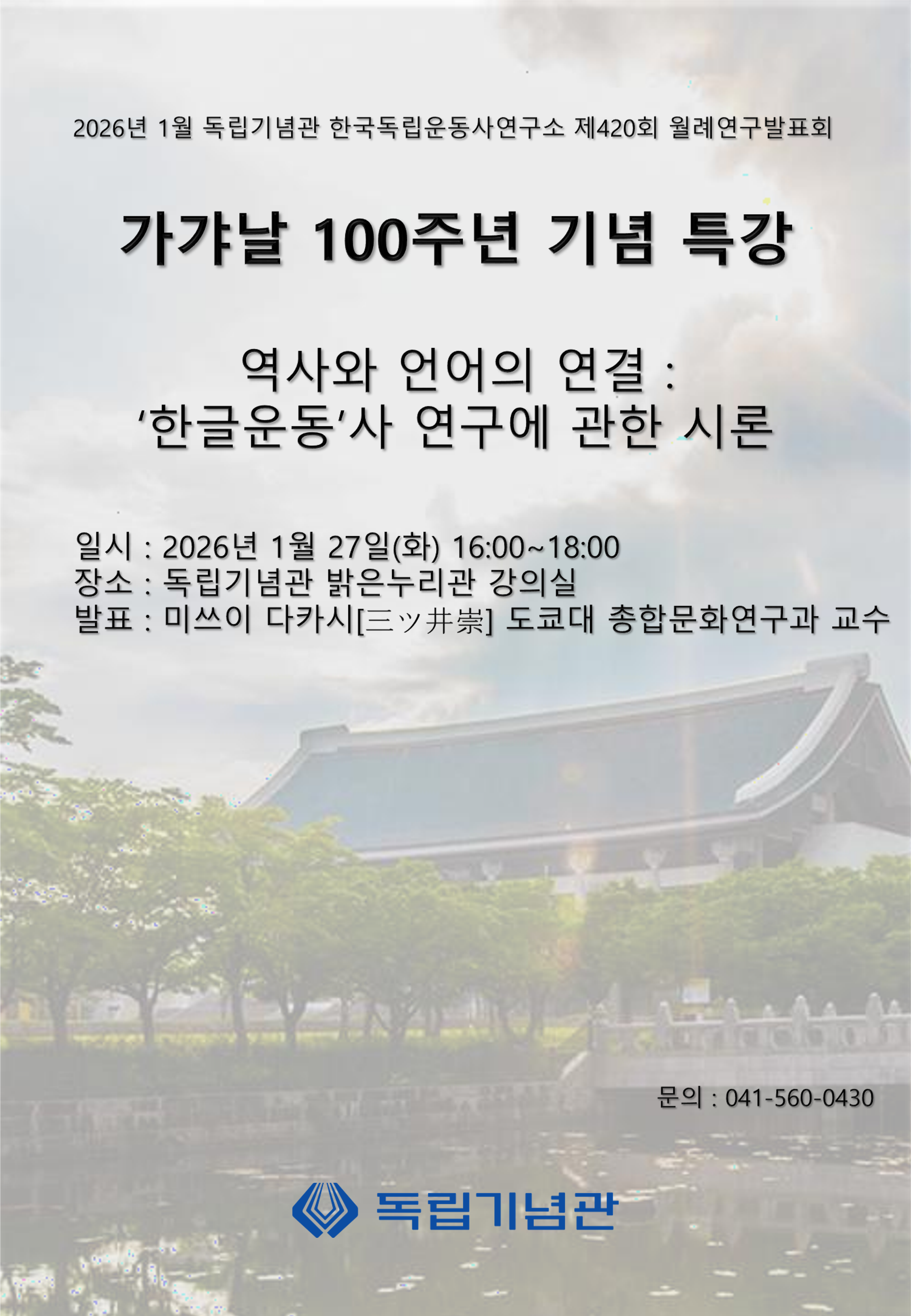 2026년 1월 독립기념관 한국독립운동사 연구소 제 420회 월례연구발표회