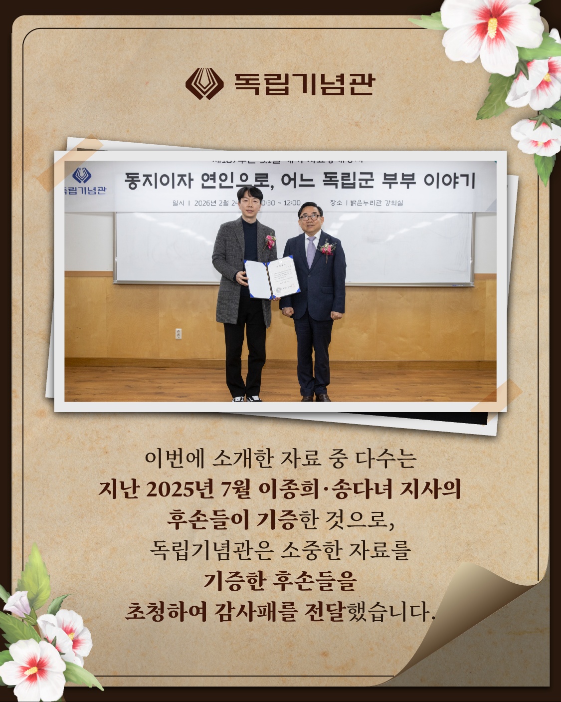 107주년 3.1절 계기 자료공개행사 '동지이자 연인으로, 어느 독립군 부부 이야기' 개최