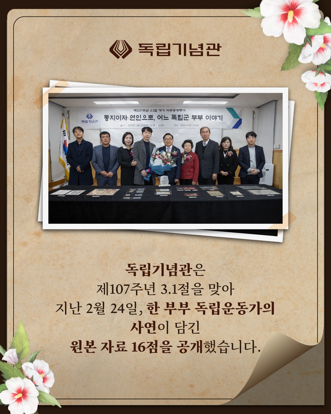 독립기념관은 제107주년 3.1절을 맞아 지난 2월 24일, 한 부부 독립운동가의 사연이 담긴 원본 자료 16점을 공개했습니다.