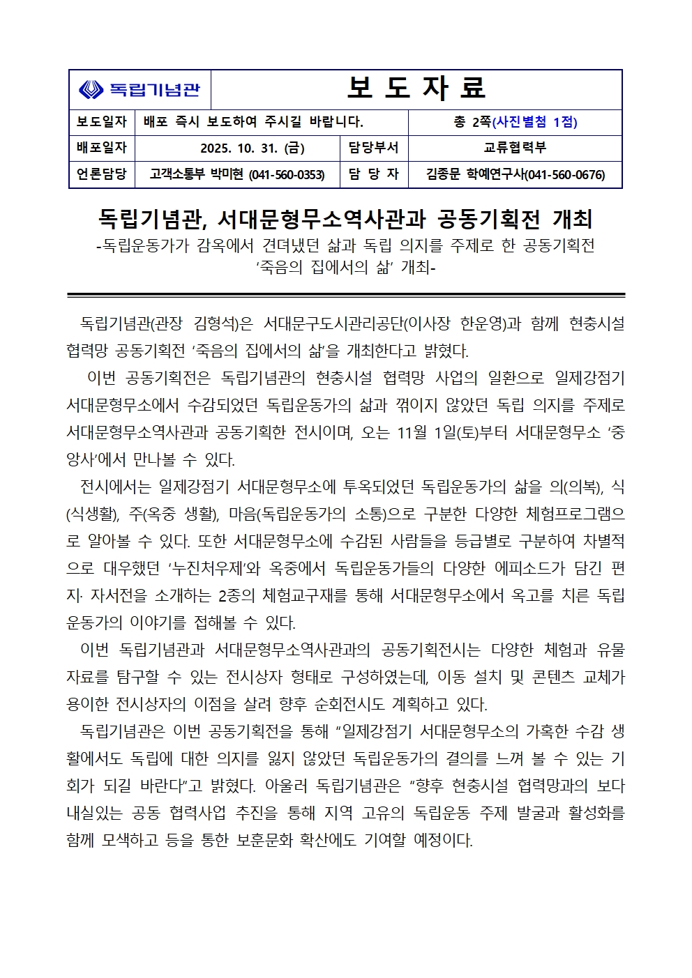 독립기념관, 서대문형무소역사관 공동기획전.hwp